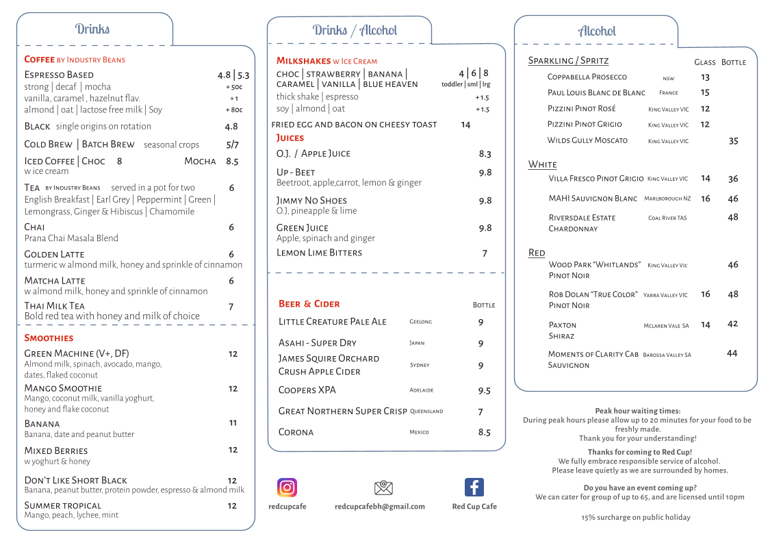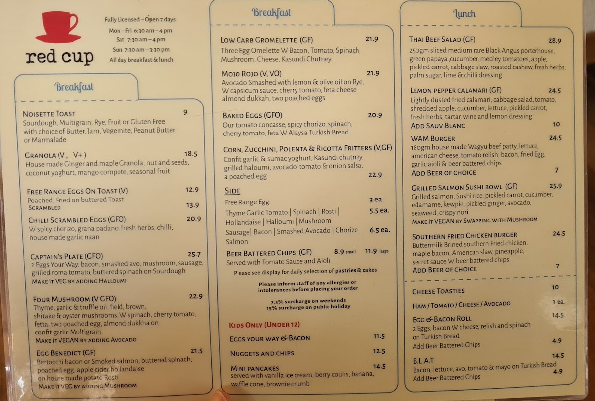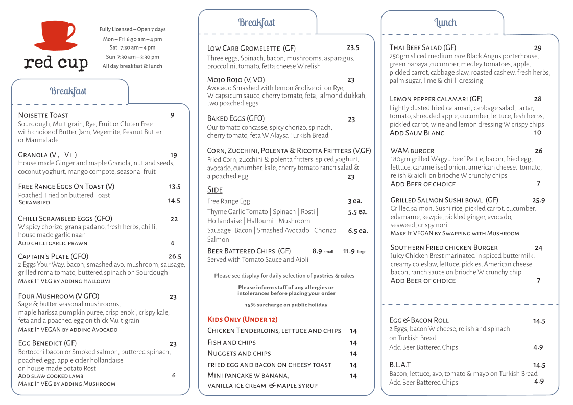 Welcome to Red Cup Cafe, a cozy retreat nestled in the heart of Box Hill, Victoria. Located at 1124 Whitehorse Rd, this café promises a delightful culinary experience that caters to both breakfast and lunch enthusiasts.